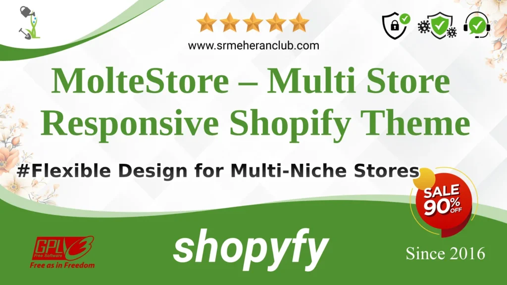 MolteStore – Multi Store Responsive Shopify Theme Shopify Theme is easy to install and manage. You just need access to Shopify. Download this theme from our platform under discounted rates and start developing your own online store.