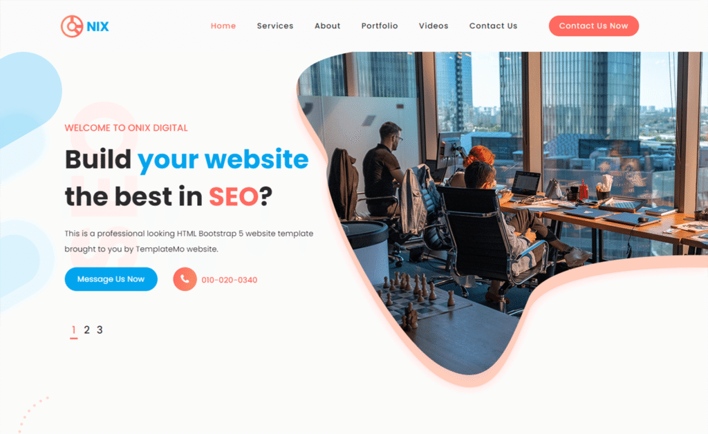 Onix is a responsive free Bootstrap 5 HTML5 website template. It is mainly crafted for SEO and digital marketing websites. Onix has a fantastic design with blue and red hues that work perfectly together on a white background. Beautiful liquid shapes are used to create images and background visuals. The design template is a one-page template that is perfectly flexible and suited for all types of web browsers and devices.