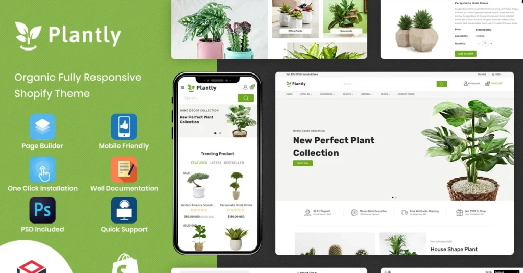 Plantly is a multipurpose Shopify theme. It comes with a lot of advance features and variations, One Click To Install, It’s Easy to use, Clean & Powerful design that would easily fit on your new or existing online store. Plantly Is suitable for Electronics, Accessories, and Multipurpose themes. Boost your selling using Plantly theme, Multi currency options, The design is well suited for all modern store, vendor-based marketplaces, affiliate websites. Plantly is a modern, clean and professional Shopify Theme. It helps you make the most out of using eCommerce to power your online store.