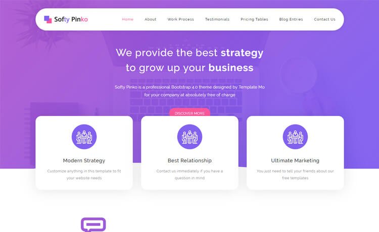 Softy Pinko is a free HTML5 Bootstrap 4 corporate business website template. It is professionally designed and perfect for websites like small business, corporate agency, digital agency or other similar kinds. Moreover, Softy Pinko is fully responsive and fits into all devices regardless of the size of the screen.